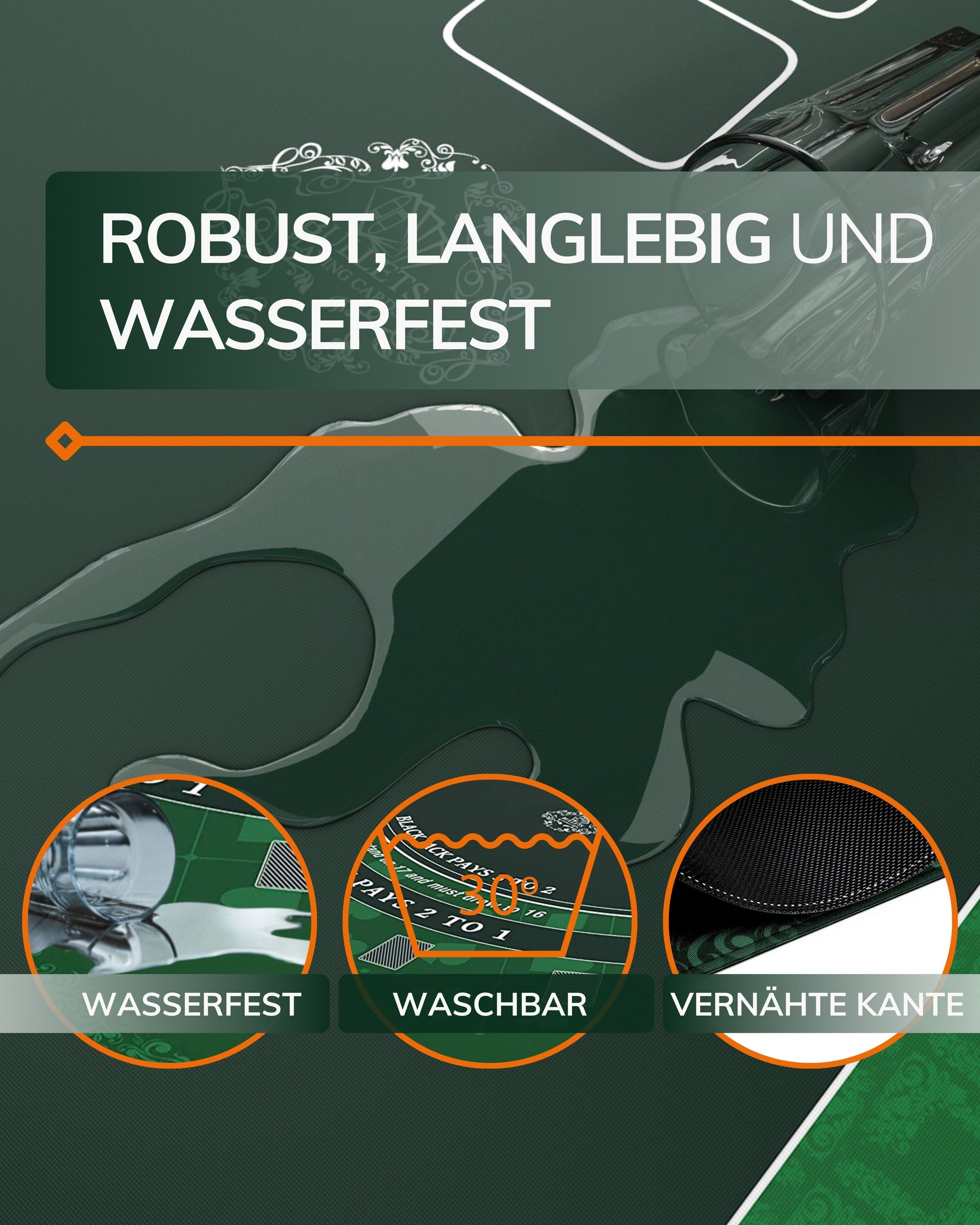 - TOP QUALITÄT: Die strapazierfähige Casino Tischauflage macht aus jedem einfachen Tisch einen professionellen Black Jack Tisch